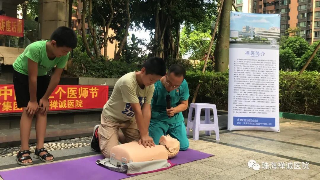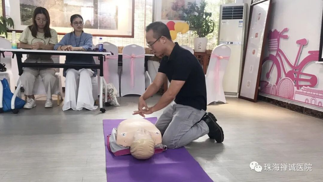 在第三个“ 中国医师节 ”前夕,珠海禅诚医院急诊科冯荣宗主任发挥专业特长,深入基层开展系列CPR(心肺复苏)急救培训活动,以自己的方式庆祝节日。