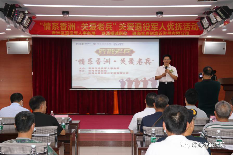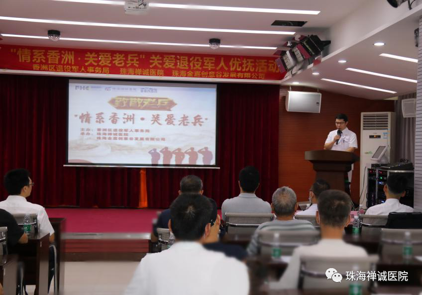 为提升退役军人的健康水平,对早期病症信号提供治疗建议,8月21日上午,香洲区服务退役军人义诊活动在珠海禅诚医院正式启动。香洲区退役军人事务局局长陈林\副局长李国鹏等参加本次活动。