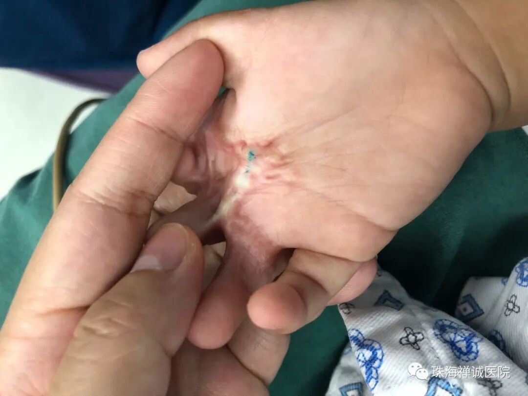再次看到轩轩,杨主任不免心疼,经检查轩轩右手2-4指并指畸形,伴右手1-4指伸直功能受限。收住院后,杨主任马上组织科内骨干并针对轩轩既往有“ 先天性心脏病病史 ”讨论手术方案。